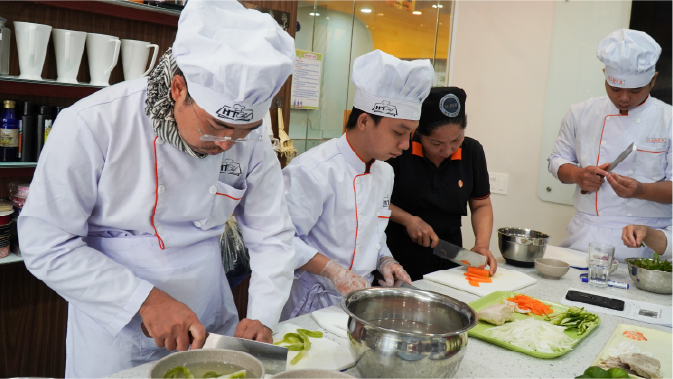 Khi nói đến nghệ thuật ẩm thực, châu Á luôn nổi tiếng với những món ăn đa dạng, hương vị phong phú và truyền thống lâu đời. Với khóa học Bếp Á, bạn sẽ có cơ hội khám phá và tìm hiểu về nền ẩm thực đa dạng này. Khóa học chú trọng vào việc cung cấp kiến thức, kỹ năng và kinh nghiệm thực tế để bạn trở thành một đầu bếp Á chuyên nghiệp.